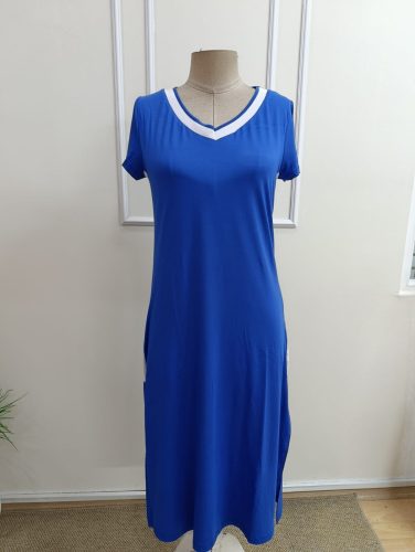 • Kadın kısa kollu v yakalı yandan şerit ve yırtmaçlı viskon uzun elbise